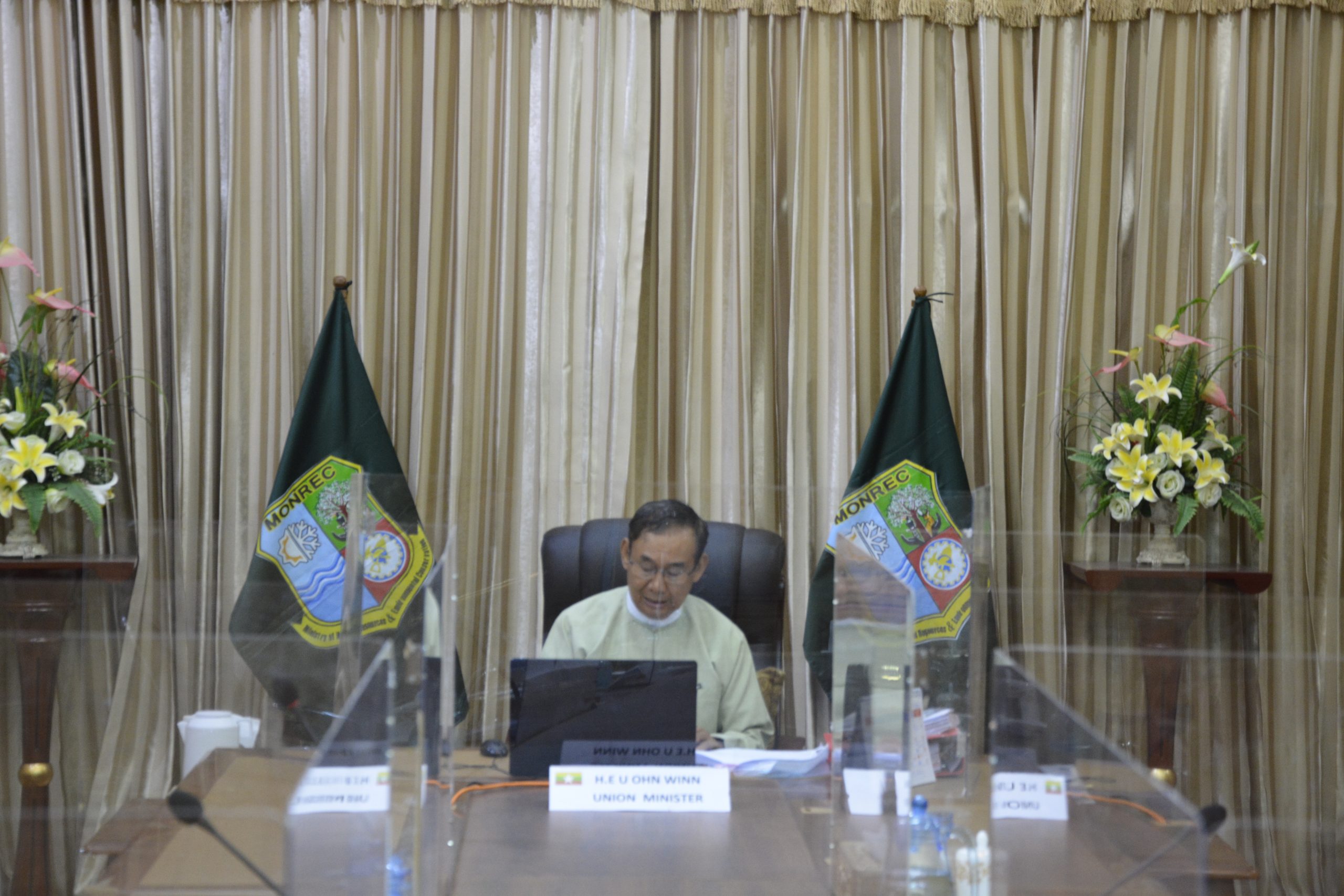 ပတ်ဝန်းကျင်ထိန်းသိမ်းရေးဦးစီးဌာန၏ ၂၀၂၀-၂၀၂၁ ဘဏ္ဍာနှစ်(ပထမအကြိမ်) လုပ်ငန်းညှိနှိုင်း အစည်းအဝေးကို ၂၀၂၁ခုနှစ် ဇန်နဝါရီလ(၇)ရက် နံနက်(၀၉း၃၀)နာရီတွင် နေပြည်တော်ရှိ ပတ်ဝန်းကျင် ထိန်းသိမ်းရေးဦးစီးဌာန၊ ရုံးအမှတ် (၅၈)၊ ညွှန်ကြားရေးမှူးချုပ်ရုံး အစည်းအဝေးခန်းမ၌ Video Conferencing စနစ်ဖြင့် ကျင်းပခဲ့ရာ သယံဇာတနှင့် သဘာဝပတ်ဝန်းကျင်ထိန်းသိမ်းရေးဝန်ကြီးဌာန ပြည်ထောင်စုဝန်ကြီး ဦးအုန်းဝင်း တက်ရောက်၍ အမှာစကားပြောကြားပါသည်။