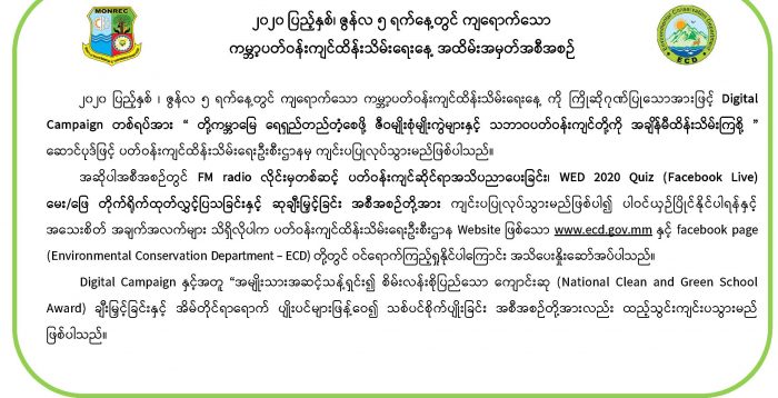 ၂၀၂၀ ပြည့်နှစ်၊ ဇွန်လ ၅ ရက်နေ့တွင် ကျရောက်သော ကမ္ဘာ့ပတ်ဝန်းကျင်ထိန်းသိမ်းရေးနေ့ အထိမ်းအမှတ်အစီအစဉ်