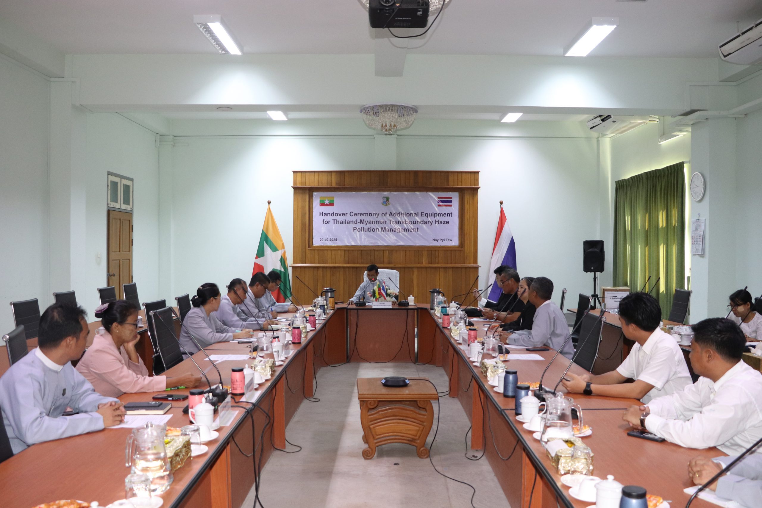 ထိုင်းနိုင်ငံ၊ မြန်မာ-ထိုင်း နယ်နိမိတ်ဖြတ်ကျော် မီးခိုးမြူငွေ့ညစ်ညမ်းမှုစီမံခန့်ခွဲရေး စီမံကိန်း အပိုင်း (၂) ၏ အထောက်အပံ့ဖြင့် Fire Hotspot နှင့် မီးခိုးမြူငွေ့ ဖြစ်ပေါ်မှု စောင့်ကြည့် လေ့လာရေးအတွက် လေထုအရည်အသွေးတိုင်းတာရေးစက်နှင့် ကွန်ပျူတာပစ္စည်းများ လွှဲပြောင်းပေးအပ်ခြင်း အခမ်းအနားကို ပတ်ဝန်းကျင်ထိန်းသိမ်းရေးဦးစီးဌာန၊ ရုံးအမှတ် (၅၈) ၌ ၂၉-၁၀-၂၀၂၅ ရက်နေ့တွင် ကျင်းပခဲ့ပါသည်။ အဆိုပါအခမ်းအနားသို့ သယံဇာတနှင့် သဘာဝ ပတ်ဝန်းကျင်ထိန်းသိမ်းရေးဝန်ကြီးဌာန၊ သစ်တောနှင့်ပတ်ဝန်းကျင်ဆိုင်ရာတက္ကသိုလ်မှ ပါမောက္ခချုပ် ဒေါက်တာခင်မောင်ဆင့်၊ ပတ်ဝန်းကျင်ထိန်းသိမ်းရေးဦးစီးဌာနမှ ဒုတိယ ညွှန်ကြားရေးမှူးချုပ် ဦးအောင်ကျော်မိုးနှင့် ညွှန်ကြားရေးမှူးများ၊ ရန်ကုန်မြို့ ထိုင်းသံရုံးမှ ပထမအတွင်းဝန် Mr.Wuthikiat Chaicharna စသည့် ကိုယ်စားလှယ် စုစုပေါင်း (၁၅) ဦးခန့် တက်ရောက်ခဲ့ပါသည်။