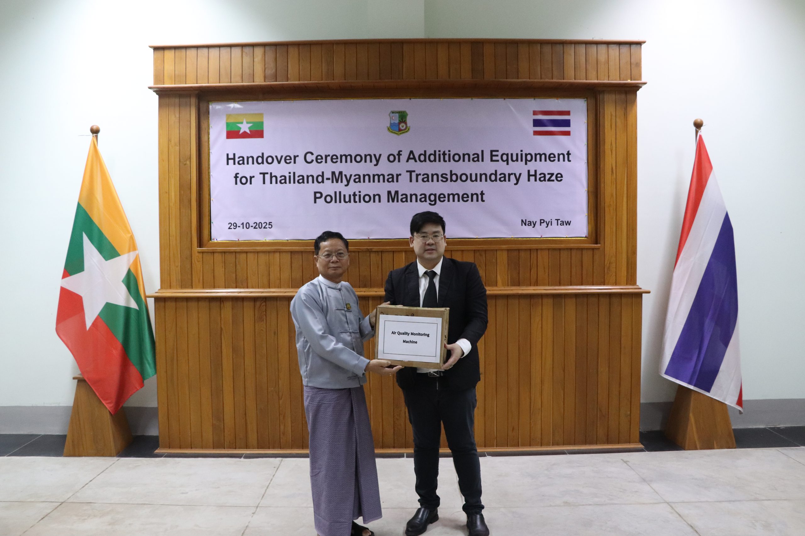 Fire Hotspot နှင့် မီးခိုးမြူငွေ့ဖြစ်ပေါ်မှု စောင့်ကြည့်လေ့လာရေးအတွက် ထိုင်းနိုင်ငံမှ လေထုအရည်အသွေးတိုင်းတာရေးစက်နှင့် ကွန်ပျူတာပစ္စည်းများ လွှဲပြောင်းပေးအပ်ခြင်းအခမ်းအနား