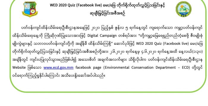 WED 2020 Quiz (Facebook live) မေး/ဖြေ တိုက်ရိုက်ထုတ်လွှင့်ပြသခြင်းနှင့် ဆုချီးမြှင့်ခြင်းအစီအစဉ်